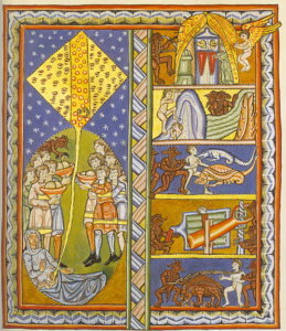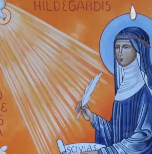 Abbesse allemande du XIIème siècle, sainte Hildegarde a reçu lors de visions de grandes connaissances sur la création. Elle met par écrit tout ce qu’elle apprend, et c’est ainsi que ses œuvres nous sont parvenues aujourd’hui.