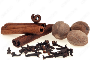 Il s’agit de la noix de muscade qui « ouvre le cœur, purifie les sens et donne de bonnes dispositions » (PHY XXI), de la cannelle qui « fait disparaître les mauvaises humeurs et en fait naître de bonnes » (PHY XX) et du clou de girofle.